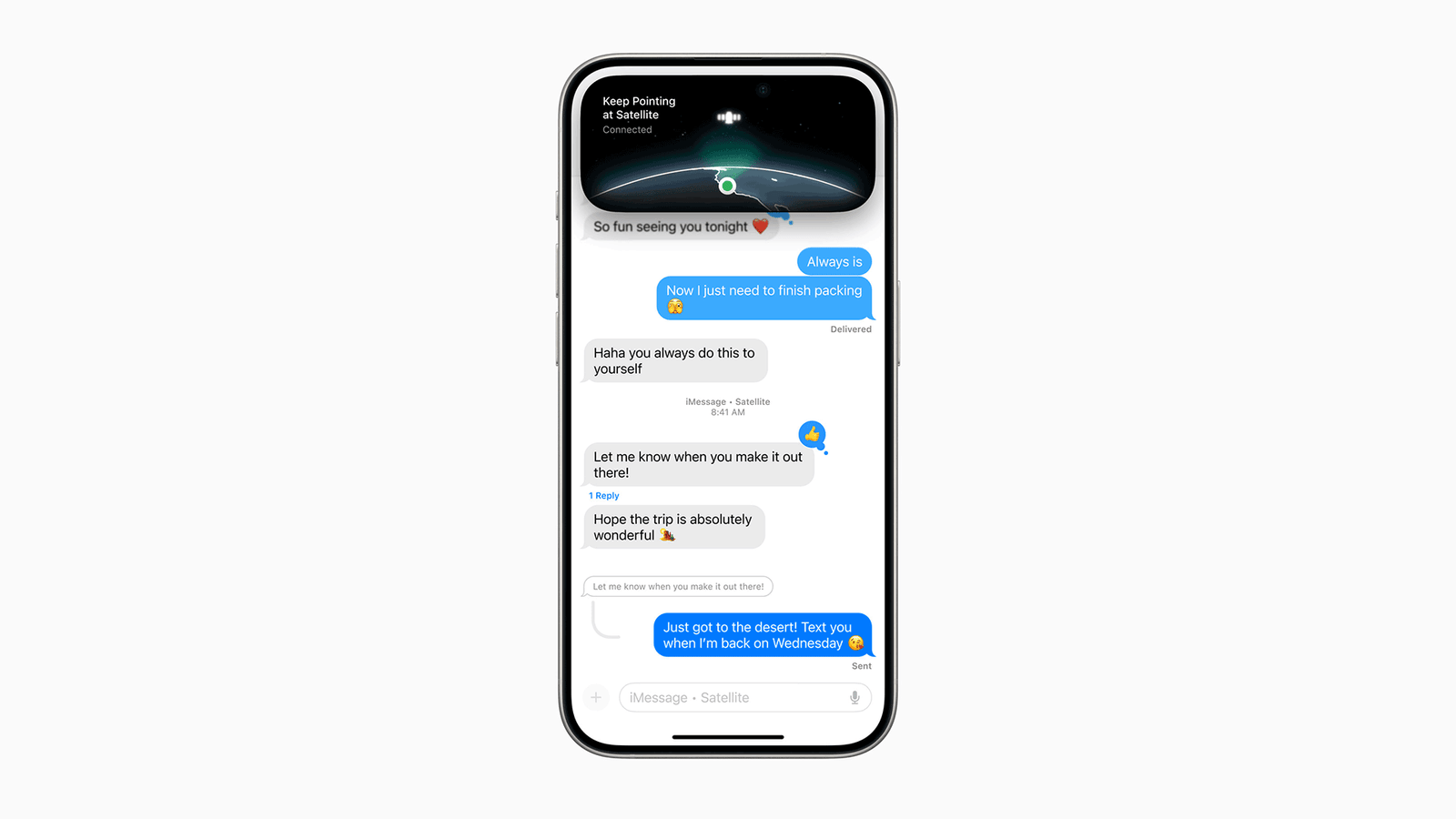 Apple secara bertahap memperluas rangkaian fitur konektivitas satelitnya untuk iPhone, dan iOS 18 membawa fitur baru yang signifikan dalam bentuk Pesan melalui satelit. Fitur ini memungkinkan pengguna untuk mengirim dan menerima pesan iMessage dan SMS, termasuk emoji dan Tapbacks, saat berada di luar jangkauan jaringan seluler dan Wi-Fi.